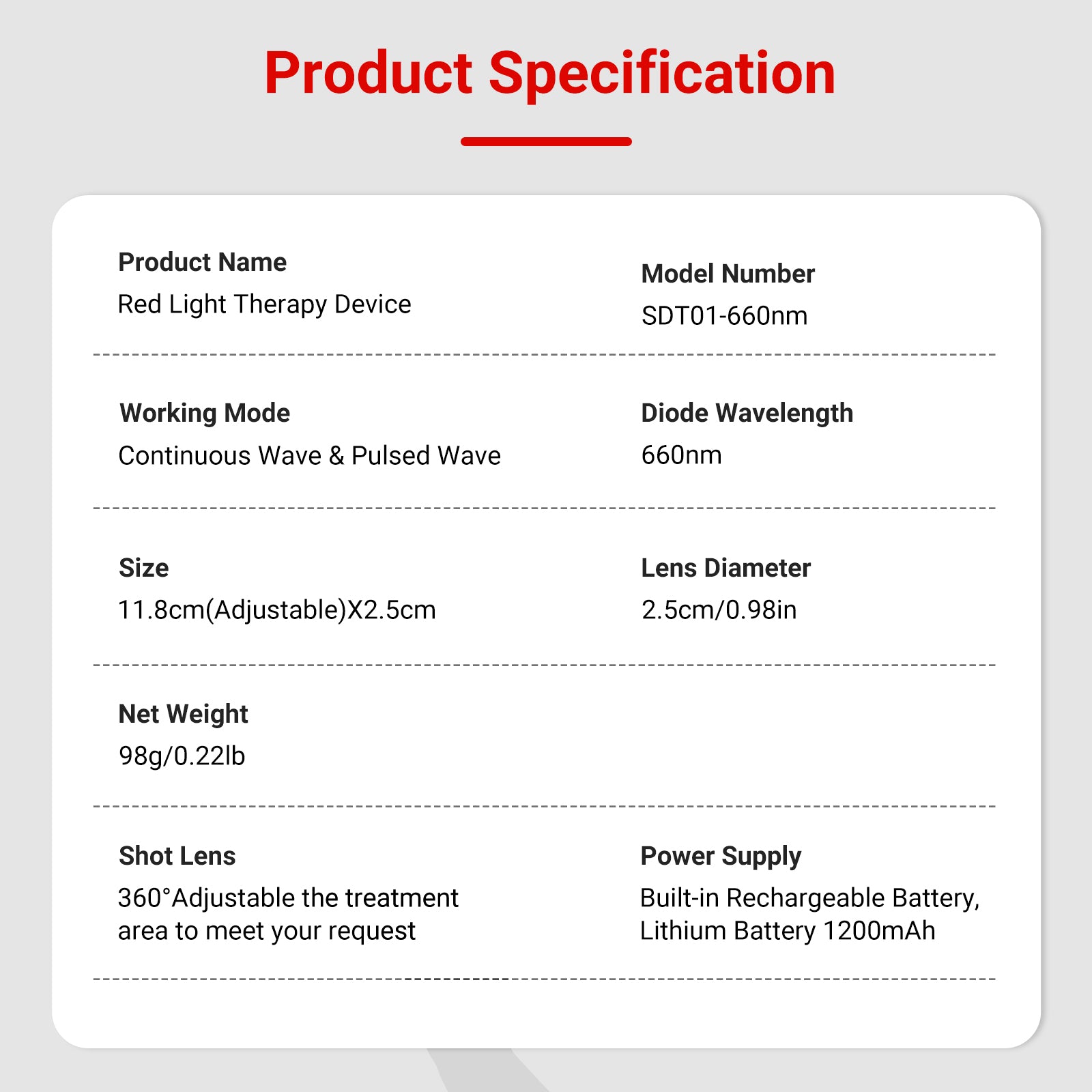 • Effective Pain & Inflammation Relief: Uses 660nm red light therapy to quickly reduce pain and inflammation in muscles, joints, and nerves. Ideal for sciatica, shoulder, back pain, arthritis, stiffness, and minor muscle aches.
