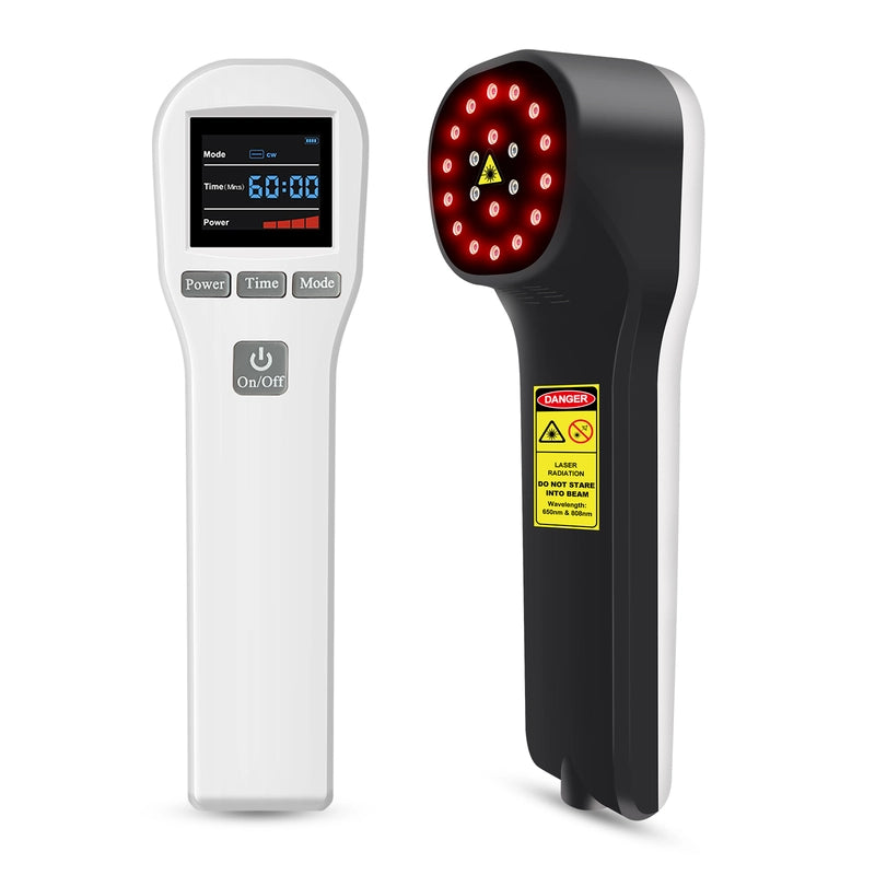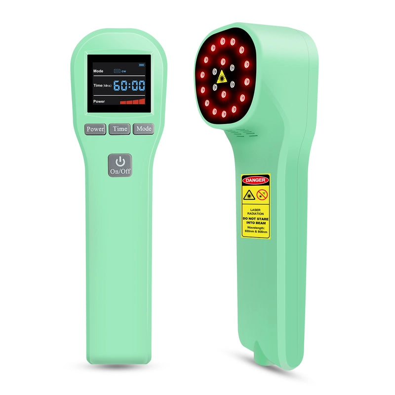 • Cold Laser Therapy Device: This compact, handheld 880mW Cold Laser Therapy Device delivers professional pain relief at home. Featuring 4 units of 808nm and 16 units of 650nm light, it provides powerful Low-Level Laser Therapy (LLLT). Effectively targeting arthritis, joint pain, and muscle soreness, it reduces inflammation and promotes tissue healing. Its small size and ease of use allow convenient pain relief and improved mobility anywhere.