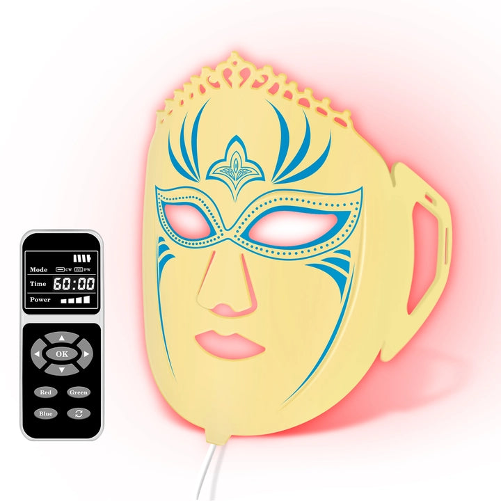 Our seven-color LED facial mask breaks through in facial skincare tech. Based on red (620nm-750nm), blue (405nm-485nm) and green (510nm-565nm) wavelengths, this fical mask derives 7 color modes for different skin needs, helping improve skin.​